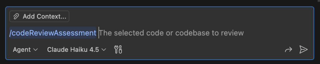 This enables us to access the prompt by typing /codeReviewAssessment.