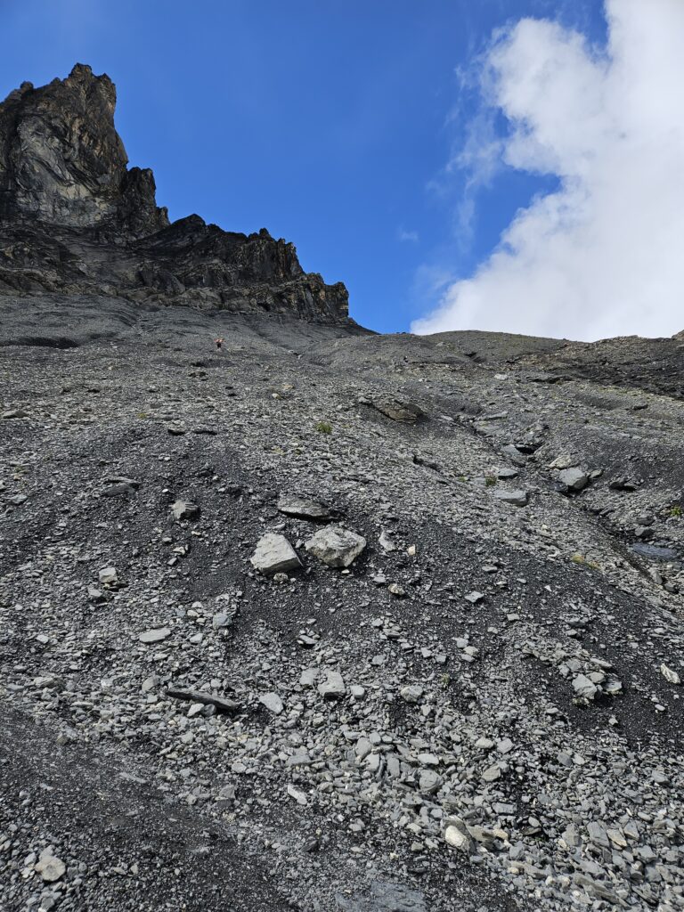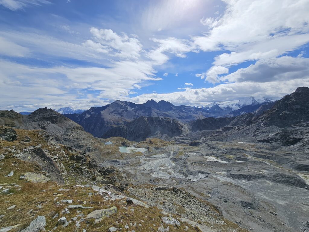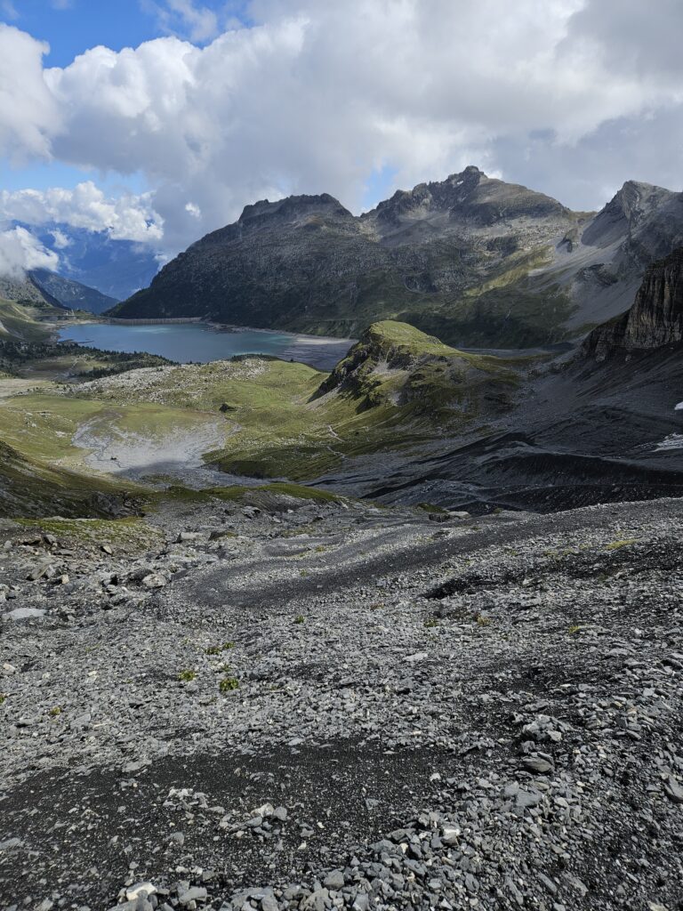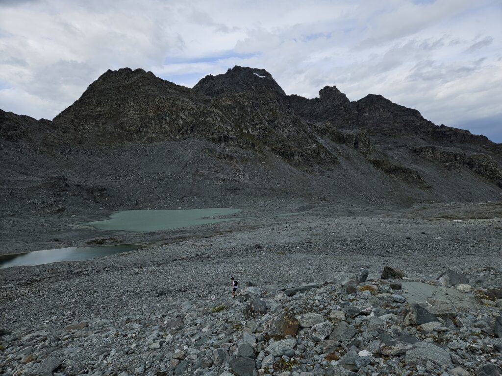 The climb that followed was steep, but thankfully not as demanding or technical as Fenêtre d’Arpette. As usual on climbs, I felt strong and was able to keep pace with one of the runners from Ticino I’d chatted with earlier. Reaching the top, we encountered a small, windswept ridge, and I hurried to move on.