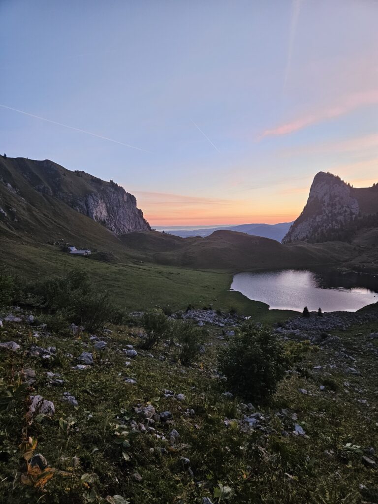 Reaching Morgins during daylight was becoming increasingly unrealistic the longer this section took. I climbed again after Barme, had a quick phone call with my girlfriend, and met a French runner along the way. There was a flat section for a while, but I didn’t feel much like running. So, we alternated between running and power hiking. We missed the water station at kilometer 112, but it didn’t matter too much – I still had enough water. Soon after, the downhill began, and with it, the sun set, forcing me to pull out my headlamp for the second night. It flashed three times shortly after, then again a few minutes later. Better to change the battery. Another break that further delayed my arrival at Morgins. But at that point, I’d managed to eat a bit better, and a flat stretch down in the valley (at 1400m) stood between me and the next life base.
