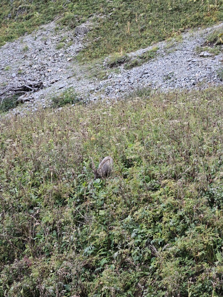 What also helped at this stage was that the people supporting me were awake again. I received more encouraging messages – they were delighted that I’d continued after Morgins and was progressing well through the second night. During the downhill, I heard something rustling in the grass. I turned to my right and saw an ibex! I was very happy to see one – I’d hoped to spot one early in the race.