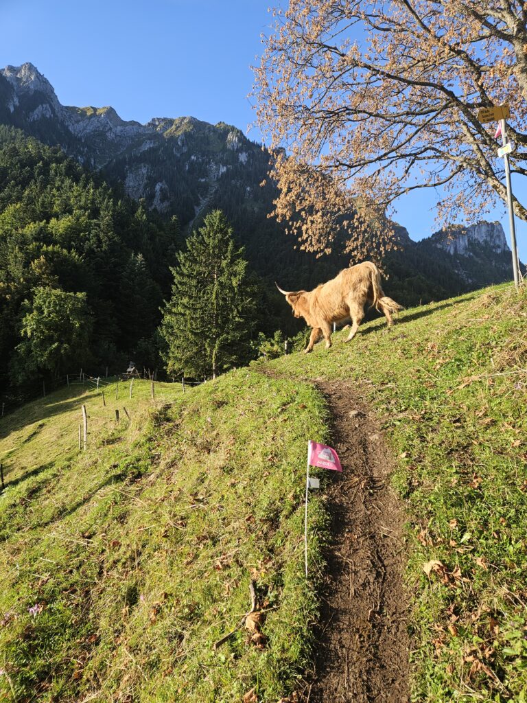 It was only the second time I’d seen a wild one. It’s the heraldic animal of my home canton. However, I didn’t want to disturb him too much and continued my downhill. The next section was then really frustrating – a single trail through the forest that wasn’t easy, full of stones, roots, and wet patches. At that stage, it annoyed me. Come on, I’d already shown I could run in tough terrain – why did it need to continue like this? At the last aid station, I took a five-minute break and refilled for the final 11km.