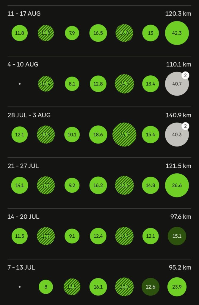 At the end of June 2025, I ran the Lavaredo Ultra Trail 120km, followed by a well-deserved 10-day vacation in Italy. This meant I didn’t resume training until around July 10th for the early September Swiss Peaks start date – giving me exactly 8 weeks and 3 days to prepare. Since I already had a solid base from my training throughout the year, I decided not to focus on high volume but instead concentrate on race-specific preparation: tackling serious elevation gain and loss. I also mixed in some weekend hiking to round out the training.