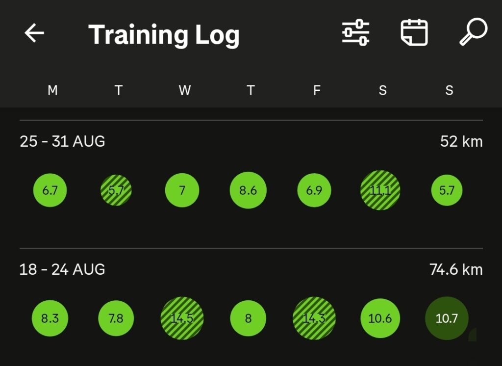 As you can see, I peaked at 140km in my highest volume week, capped off the training block with a 42.3km long run, and then settled into a solid 2-week taper. For elevation, I maxed out at around 4’000m of gain in one particular week, while most others hovered around the 3’000m mark.