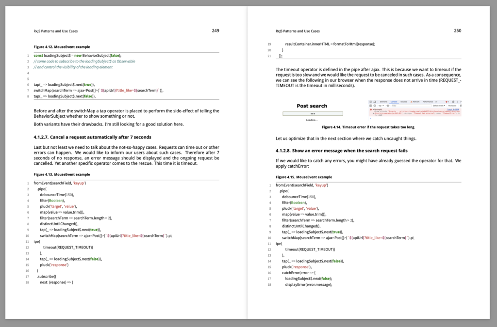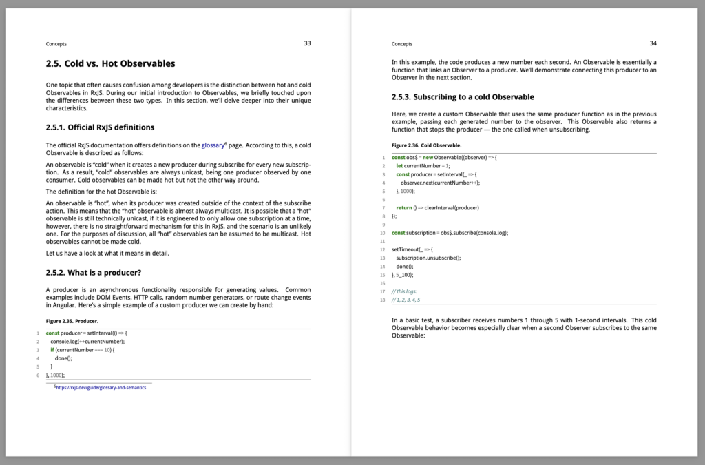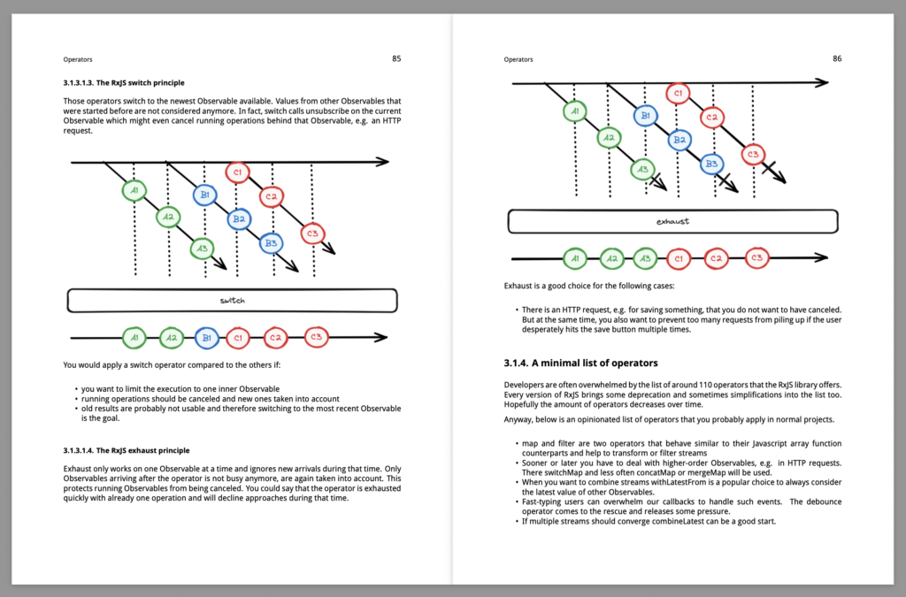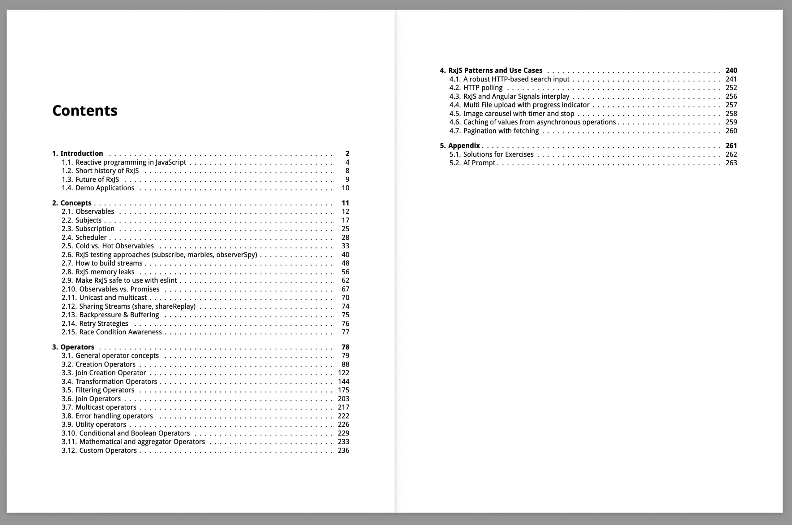Build your RxJS expert know-how by starting with the fundamental concepts, going through the operators, and finally applying all what you’ve learned in the pattern chapter.